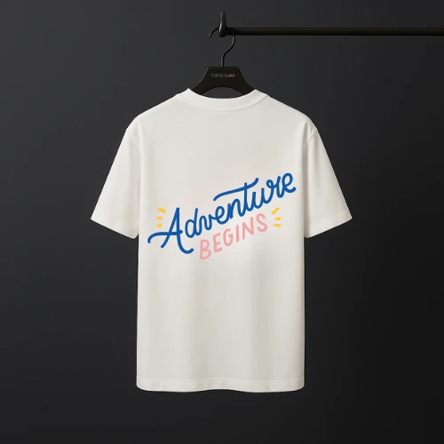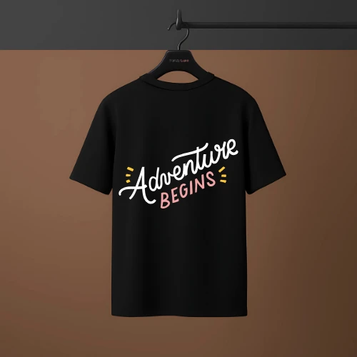 "Kickstart your journey with the 'Adventure Begins' drop shoulder graphic t-shirt for men. Featuring a vibrant and playful design, this relaxed fit shirt adds a bold and adventurous vibe to your casual wardrobe. Available in multiple sizes."