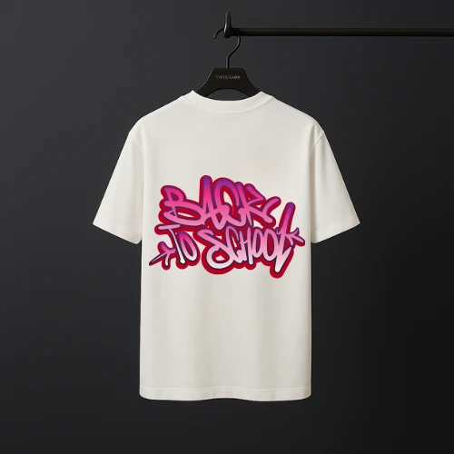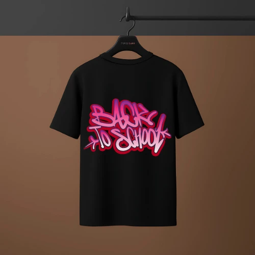 "Get ready for school with the 'BACK TO SCHOOL' drop shoulder graphic t-shirt for men. Featuring a vibrant graffiti-style design in bold pink and purple, this relaxed fit shirt adds an energetic and trendy touch to your wardrobe. Available in multiple sizes."
