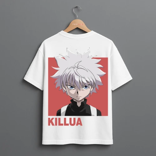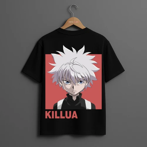 Embrace the bold look of the Killua Zoldyck Men's Drop Shoulder T-Shirt. With a striking graphic of Killua from Hunter x Hunter, this stylish tee combines comfort and anime flair, perfect for any fan of the series.