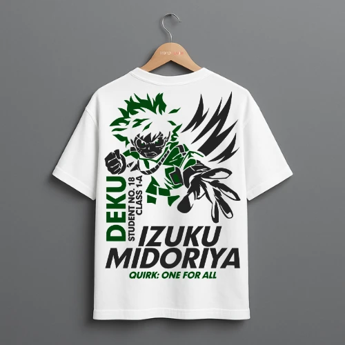 Show your love for My Hero Academia with this premium men's drop shoulder T-shirt featuring Izuku Midoriya (Deku). Made with high-quality fabric, this stylish and comfortable t-shirt is perfect for anime fans in Bangladesh. Available now for quick delivery!