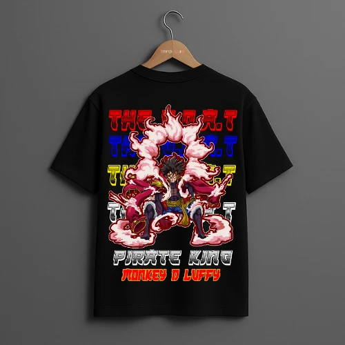 Show off your anime fandom with this stylish men's drop-shoulder t-shirt featuring a bold graphic of Monkey D. Luffy in his Pirate King attire from One Piece. Crafted for comfort and made with premium materials, this t-shirt offers a perfect fit for casual days. Ideal for fans of the legendary series!