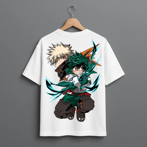 Elevate your casual wardrobe with this men's drop shoulder t-shirt featuring a vibrant My Hero Academia design. The shirt showcases dynamic artwork of Bakugo and Midoriya, ideal for anime fans. Made from soft, breathable fabric, it ensures all-day comfort. Perfect for everyday wear, it’s a must-have for anime enthusiasts in Bangladesh.