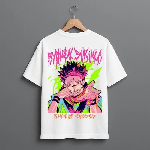 This Men's Jujutsu Kaisen Drop-Shoulder T-Shirt features Ryomen Sukuna with his iconic "King of Curses" graphic. Ideal for anime lovers, it combines a bold design with comfort. Available in various sizes.