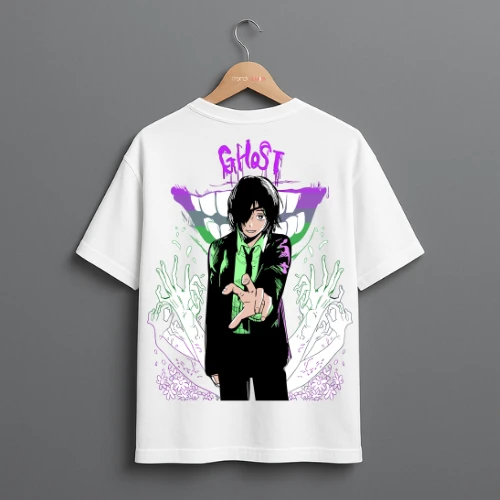 This Men's Jujutsu Kaisen Drop-Shoulder T-Shirt features Yuta Okkotsu with his "Ghost" design. A must-have for anime lovers in Bangladesh, offering both comfort and style. Available in multiple sizes.