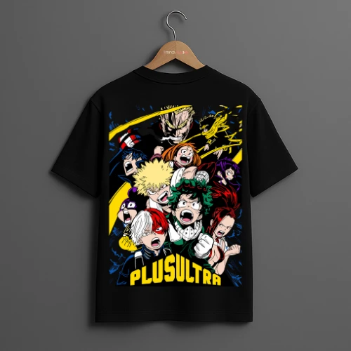 Unleash the power of your favorite heroes with this vibrant "PLUS ULTRA" graphic drop-shoulder t-shirt from My Hero Academia. Designed for anime fans in Bangladesh, this shirt blends bold artwork with everyday comfort.
